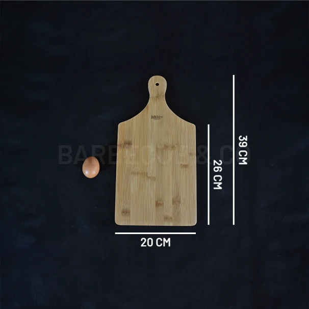 Présentation de la planche à découper avec manche en bambou 39x20cm