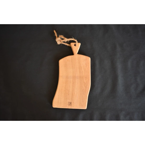 Cette planche à découper se caractérise par son design à la fois épuré et naturel. La planche a été travaillée tout en respectant les lignes naturelles du bois ce qui en fait une pièce unique.